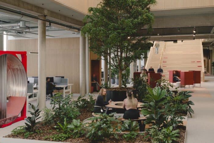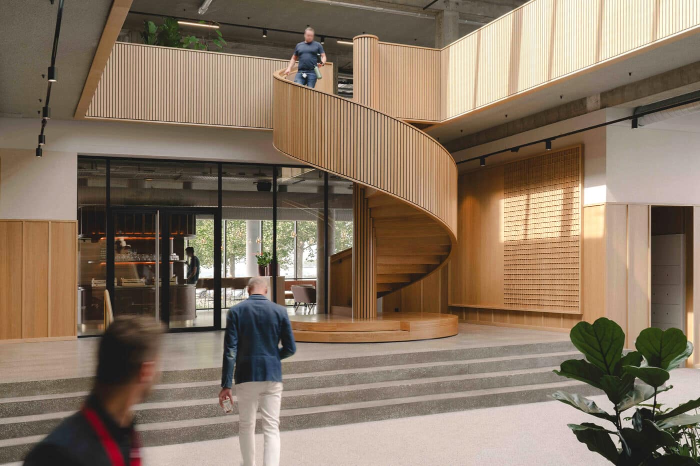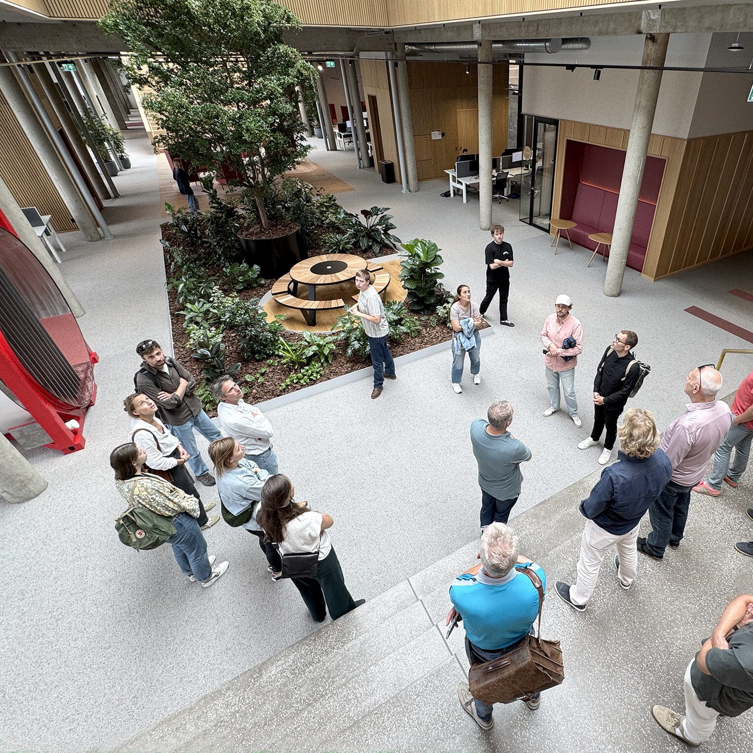 De afgelopen jaren werkten we, samen met een integraal team, aan deze bijzondere opgave: de transformatie van een vergeten werkplaats in de Rotterdamse haven tot een bruisende hub waar werken, leren en ontmoeten samenkomen. Een superdiverse opdracht waarin we aanvoerder waren van een multidisciplinair ontwerpteam, een grootschalig interieur ontwierpen en een karaktervol gebouw nieuw leven gaven. Met groot plezier werkten we samen met Pieter den Hartogh, Mark Warner en Ewald de Bruin, en leerden we van elkaars ambitie en visie. Over een project van deze omvang valt nog veel te vertellen – daarover binnenkort meer. Maar voor nu: een eerste blik op de resultaten van dit sterk staaltje teamwork, en een proost op Den Hartogh Basecamp!