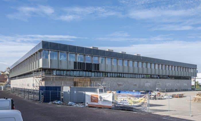 De bouw van de Titaan op het Haagse Binckhorstterrein krijgt vorm! De kozijnen zijn voorzien van glas, de zonnepanelen zijn bevestigd en langzaam maar zeker transformeert het gebouw van structuur en kleur. Het voormalig magazijn voor sigaretten en tabak wordt getransformeerd tot levendige broedplaats voor creatieve bedrijven in de maakindustrie – een logische doorstroomplek voor scale-ups vanuit de Caballerofabriek. Daarbij wordt gestreefd naar een zo veel mogelijk circulair en energiezuinig resultaat.