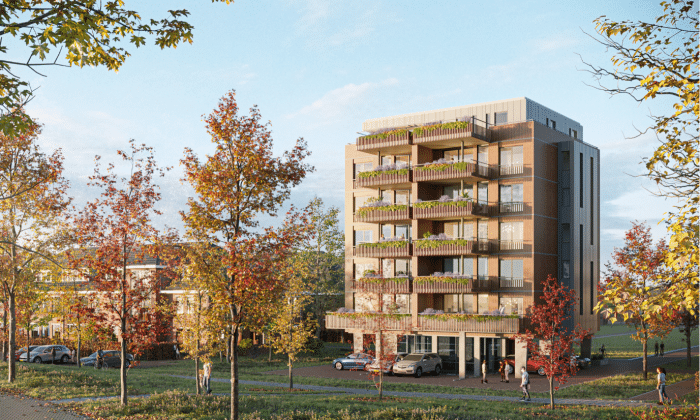 In al onze projecten proberen wij zo goed mogelijk om te gaan met het bestaande materiaal. Dat gaat over bestaande gebouwen maar zeker ook over bestaande of hernieuwbare bouwmaterialen. Voor al het hout dat we voorschrijven, wordt FSC- of PEFC-gecertificeerd hout gebruikt. Daarnaast maken we bij bepaalde projecten gebruik van nieuwe houtmaterialen, zoals kruislaaghout (CLT), bijvoorbeeld bij het project de AppèlPlaats in Arnhem. CLT is massief geprefabriceerd hout dat bestaat uit panelen, balken of kolommen en kan gewapend beton vervangen vanwege de sterke constructieve eigenschappen.