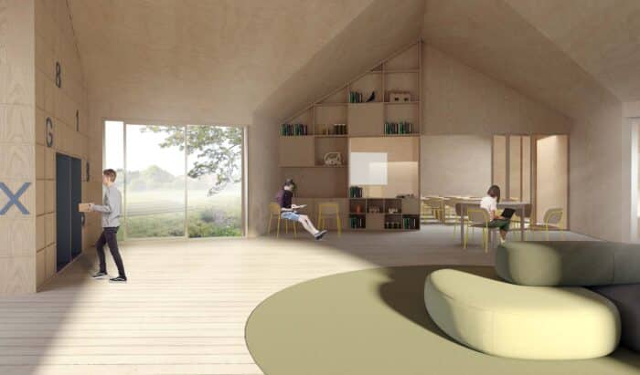 Vrijkomende materialen uit de oudbouw worden hergebruikt in een aantal nieuwe circulaire leerpaviljoens. Deze nieuwe circulaire typologie geeft de mogelijkheid om verder te bouwen aan de campus en de paviljoenen te transformeren bij veranderend gebruik in de toekomst.