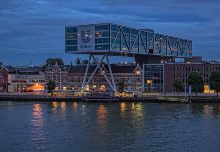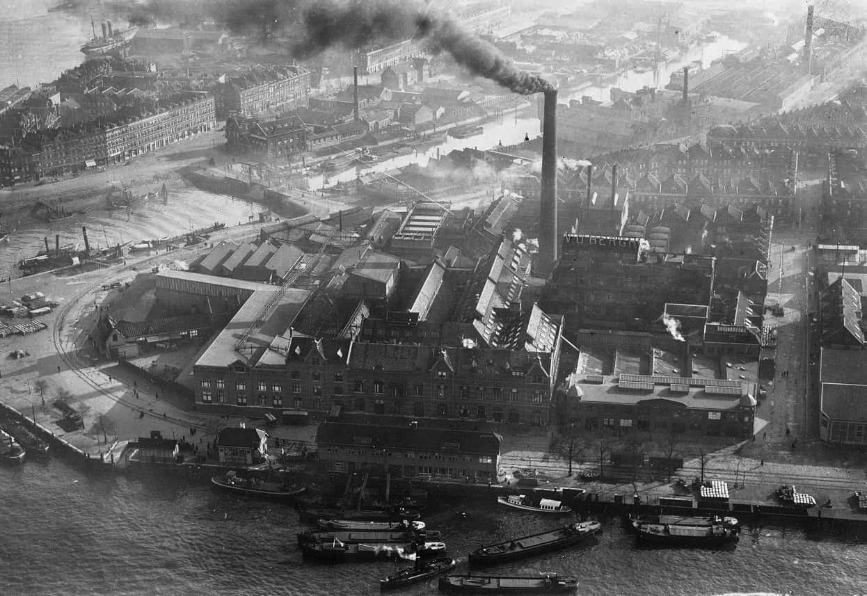 Het voormalige Unilever-terrein met de margarinefabriek was meer dan een eeuw een afgesloten terrein en alleen bereikbaar voor fabrieksmedewerkers. De margarinefabriek werd ontworpen door architect Augustinus Nolen. Aan de Nassaukade bedacht hij een monumentaal front, dat het visitekaartje van de fabriek richting de Nieuwe Maas en de stad werd. Haaks daarop kwamen de fabriekshallen, waarin de aanvoer van grondstoffen, de margarineproductie en het verpakken plaatsvonden. Ook de emballagehal: gebouwd in 1890 met onverwoestbare gietijzeren kolommen. Het werd de grootste en modernste margarinefabriek van het land, waarbij vanaf de opening in 1891 de productie niet stil stond. De fabriek uitgebreid, de receptuur veranderde, er ontstonden nieuwe merken en verpakkingen en er kwamen steeds betere en snellere machines.