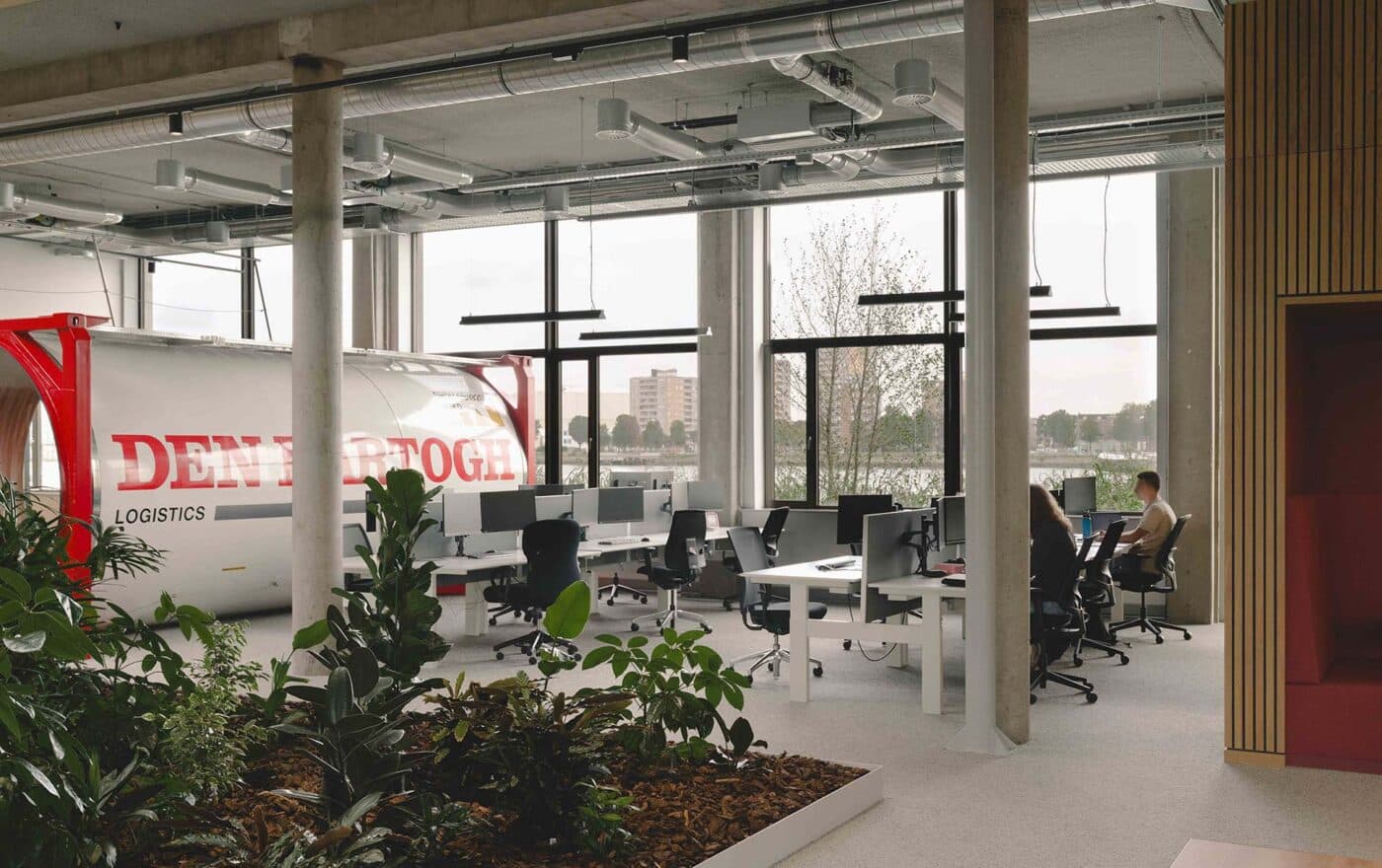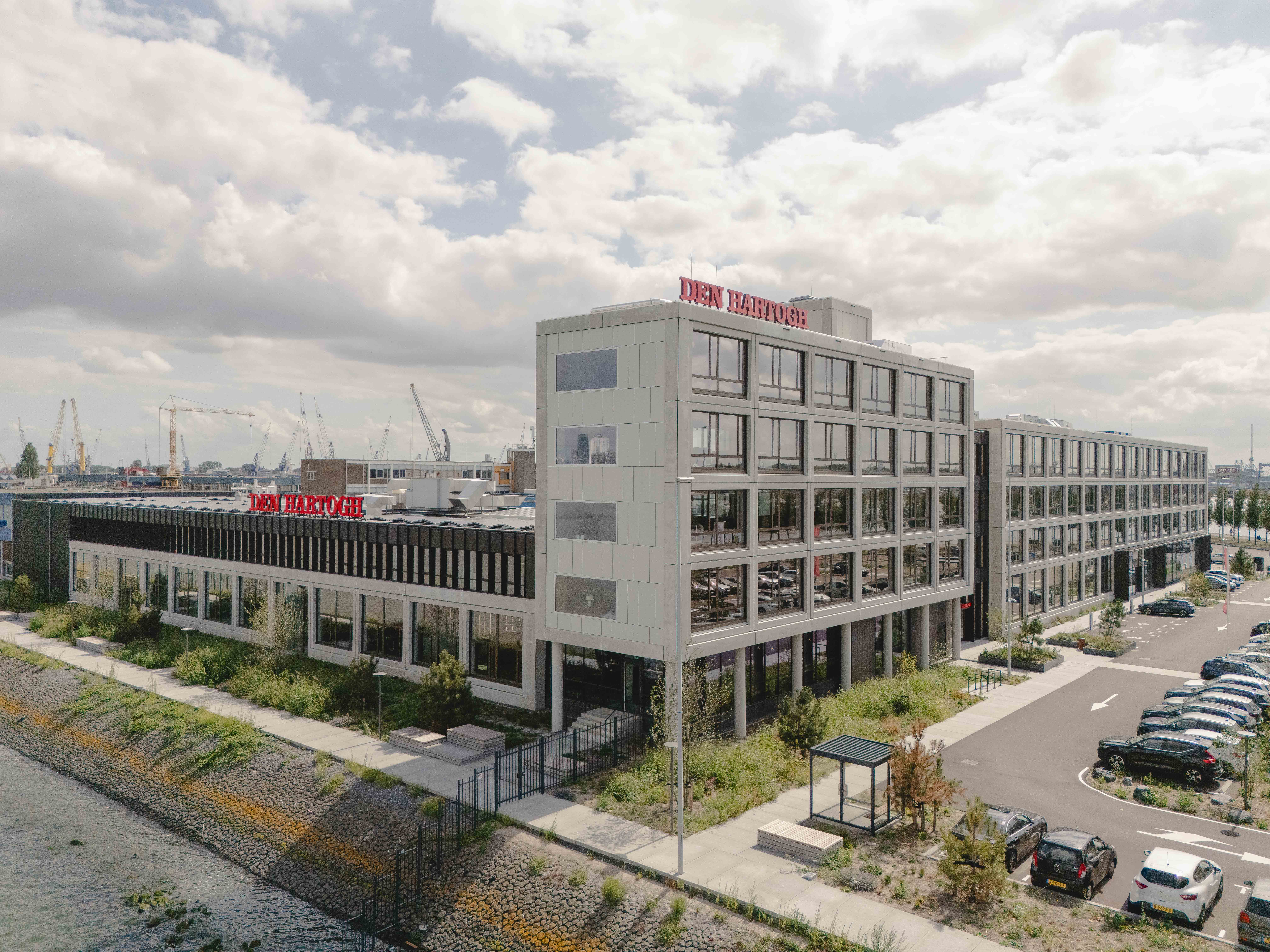 Het familiebedrijf Den Hartogh Logistics werd ruim 100 jaar geleden opgericht door Ko Den Hartogh en wordt nog altijd door familie gerund. Met vestigingen over de hele wereld is het één van de grootste transportbedrijven van Nederland. De verhuizing naar een premium locatie aan de zuidelijke oever van de Nieuwe Maas en nog altijd ’s werelds grootste havenbassin is daarmee geen vreemde zet. De ambitie voor het nieuwe kantoor bleek van hoog niveau; een toekomstbestendige en inspirerende werkplaats, groen, gezond en drager van de Den Hartogh identiteit bij uitstek. Maar wat behelst deze identiteit? Deze opgave omvatte daarmee meer dan nieuwe huisvesting alleen. Het vroeg om een integrale benadering voor de realisatie van een toegankelijk en duurzaam thuis; een Basecamp voor alle medewerkers.