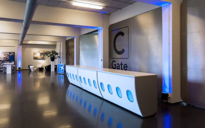 In opdracht van de Gemeente Den Haag heeft Braaksma & Roos Architectenbureau de voormalige Luchtvaart Nijverheidsschool Anthony Fokker herontwikkeld tot evenementenlocatie. Het hart van het gebouw wordt gevormd door de indrukwekkende 9 meter hoge hangar, waar vroeger de vliegtuigen opgesteld stonden. De hangar wordt overspannen door een staalconstructie met glazen lichtstraten, die zorgen voor een bijzonder lichte ruimte. Door het weghalen van storende elementen is de architectonische kwaliteit van het gebouw benadrukt. Stoere beeldbepalende elementen zoals de zware ‘gate’ deuren maken de ruimte onmiskenbaar van nu. De Fokkerterminal wordt ingezet voor zeer uiteenlopende evenementen, van congressen en beurzen tot bedrijfsfeesten en dansvoorstellingen.