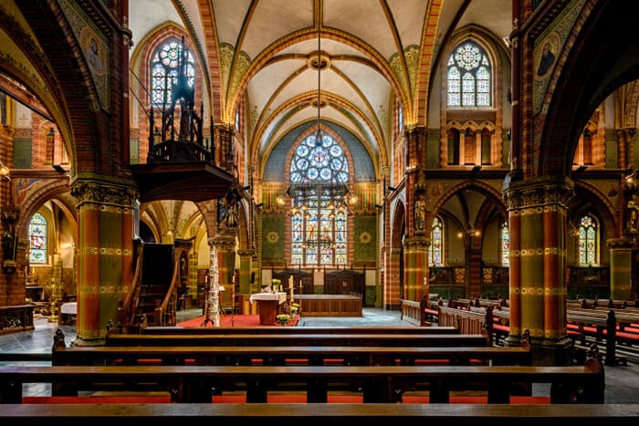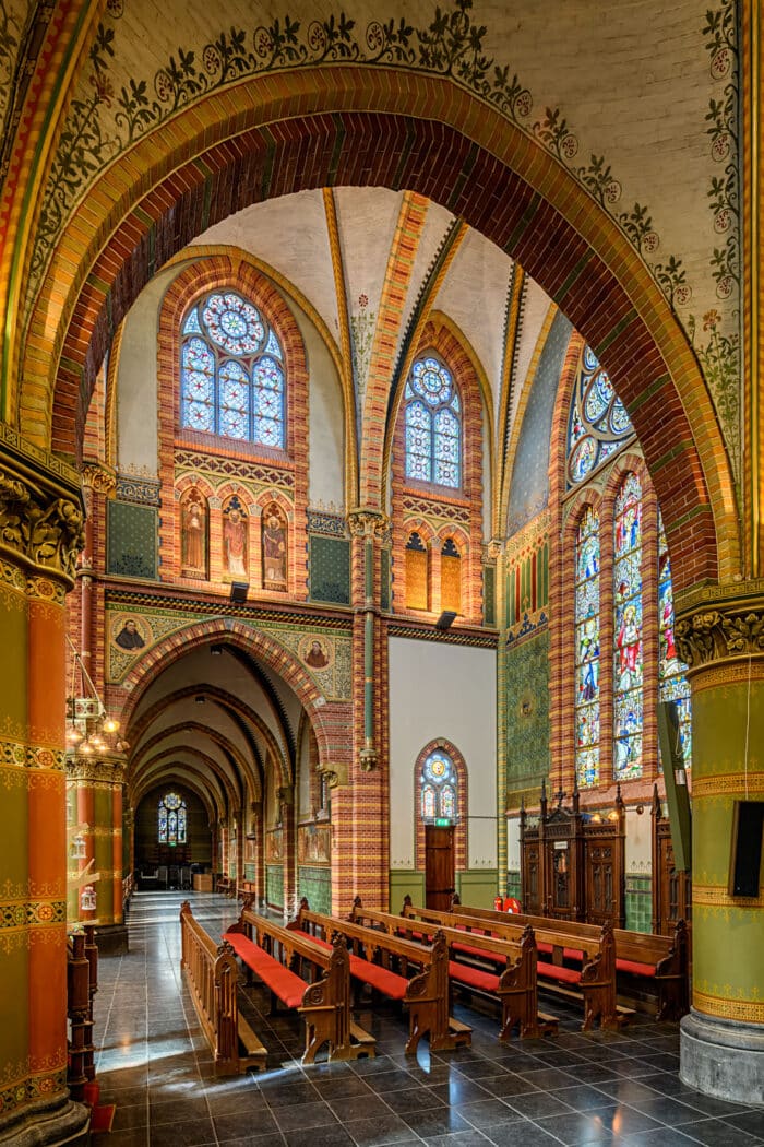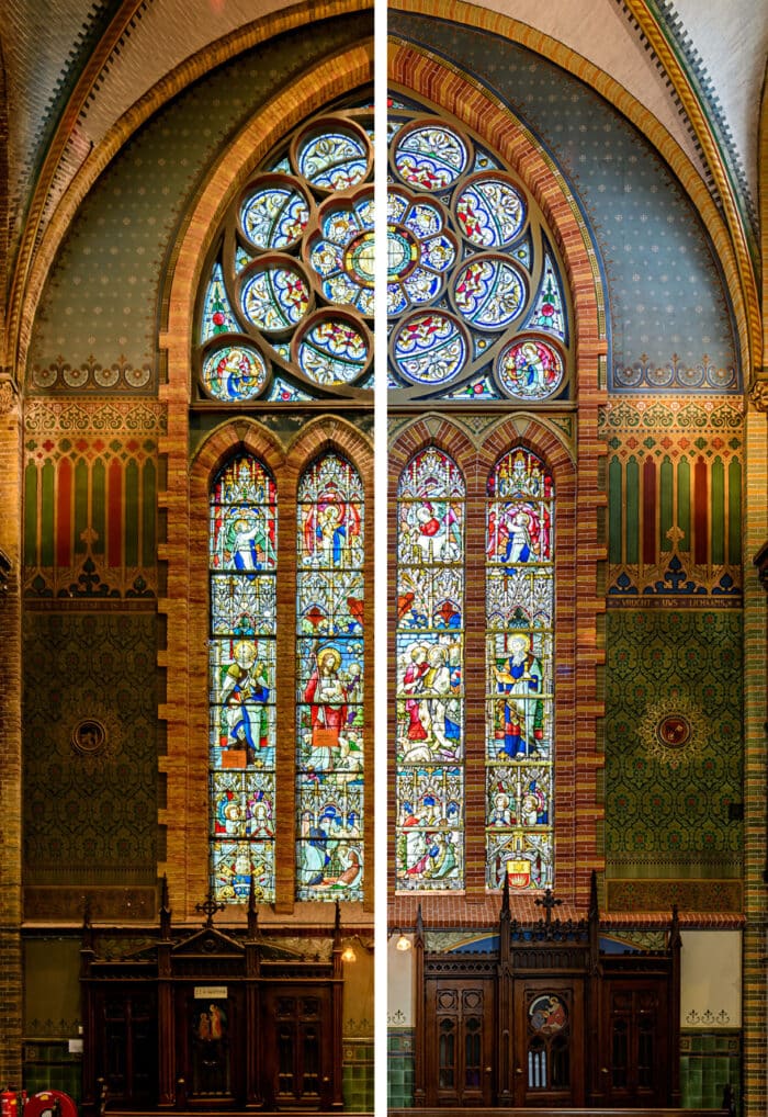 Met de gefaseerde restauratie staat de kerk weer stevig op z’n fundering en is instabiliteit niet langer een probleem. Het elegante kleuren palet is weer in oorspronkelijke contrasten hersteld waardoor de schilderingen weer spreken tot de verbeelding van de bezoeker. Ook de glas-in-lood ramen zijn museaal teruggeplaatst met een laag glas aan de buitenzijde, veilig voor weersomstandigheden en nog even kleurig als altijd. Het beschermglas is deze keer op de oorspronkelijke plaats namelijk ín de raamtraceringen geplaatst, in plaats van ervoor. Op deze manier blijft de expressieve vorm van de natuurstenen traceringen in tact.