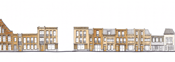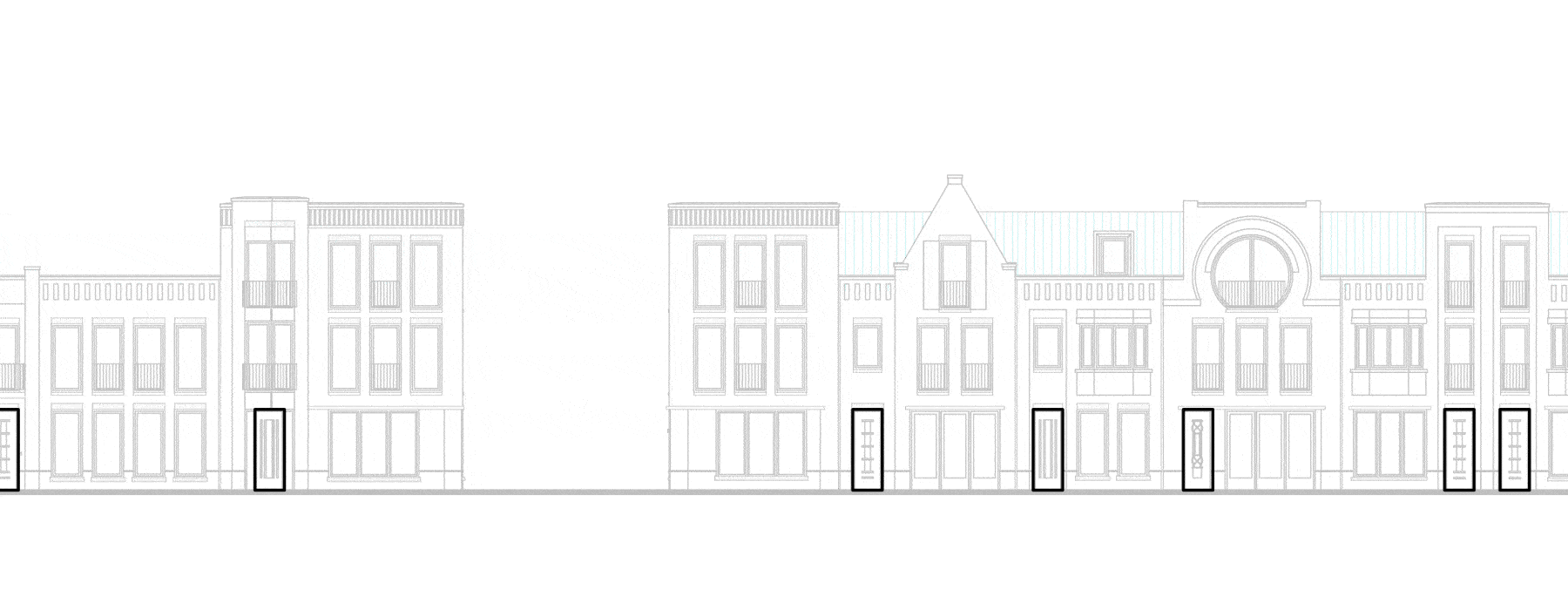 Vanuit de analyse laat de Koningstraat zich zien als een straat vol individuele identiteiten. Met de transformatie van woonstraat tot woon-winkelstraat zijn veel woonhuizen opgehoogd en uitgebouwd. Bijna elk huis had op den duur wel een erker, een extra verdieping en een sierlijke opengewerkte daklijst – elk op een eigen manier en vol detail. Één belangrijk overgebleven bouwwerk uit deze tijd is het prominente belastinggebouw. Om de charme van dit gebouw te benadrukken is de nieuwbouw ingetogen en minder hoog opgetrokken. Ook de hoek naar de Oostslootstraat krijgt een ruimtelijk accent. Deze straat vol ‘achterkanten’ krijgt twee nieuwe naar de straat gerichte woonhuizen waarmee het beter integreert met de rest van de wijk.