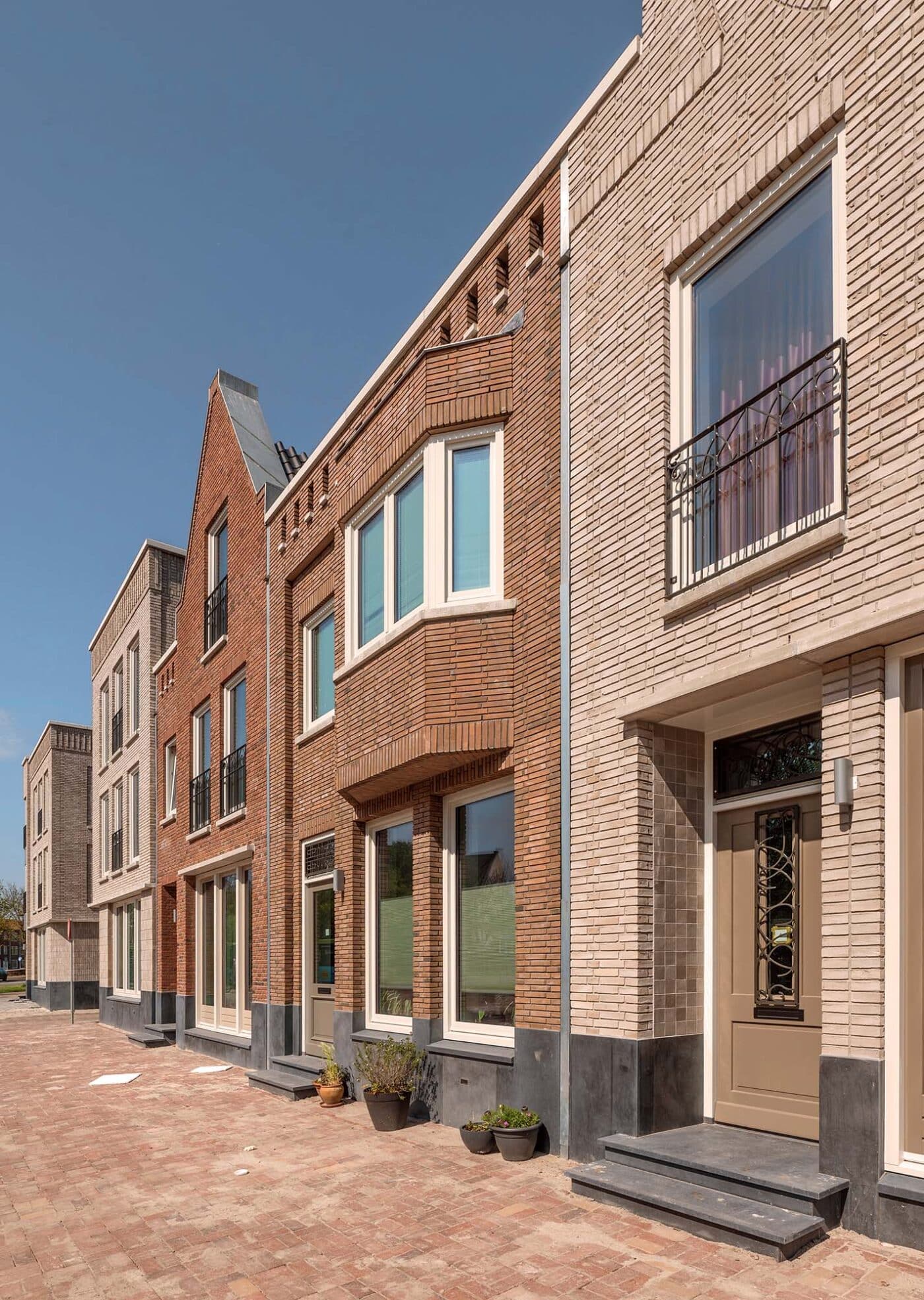 Dat de inspiratie afgeleid is uit de oude Koningstraat is duidelijk terug te vinden in de verschillende nieuwe woningen. Raampartijen op de begane grond doen denken aan de grote winkelpuien die hier ooit zaten. Details zoals verdiepte entree-nissen, opengewerkte daklijsten, erkers en segmentbogen maken een onmiskenbare referentie naar het verleden, maar met een eigentijdse invulling. Iedere woning heeft duidelijk zijn eigen karakter in de straat, maar om de rust te bewaren zijn een aantal optische lijnen doorgetrokken. De natuurstenen plint en het warme ton-sur-ton kleurenpalet zorgen voor harmonie in het geheel.
