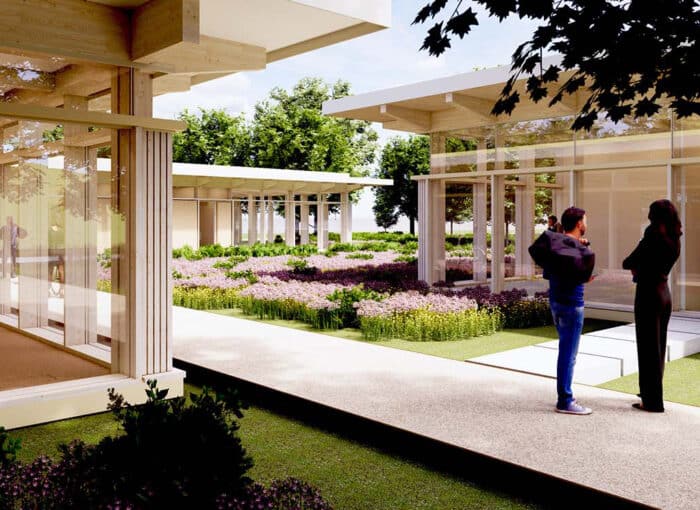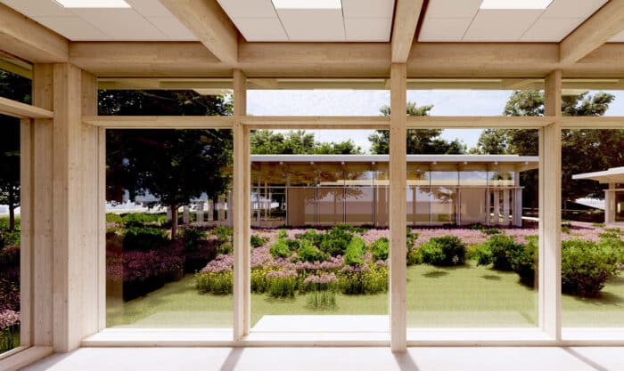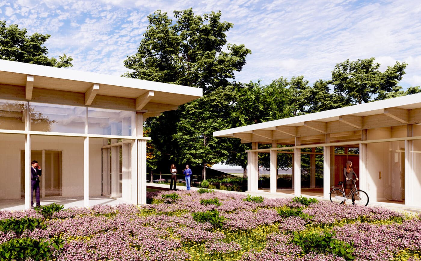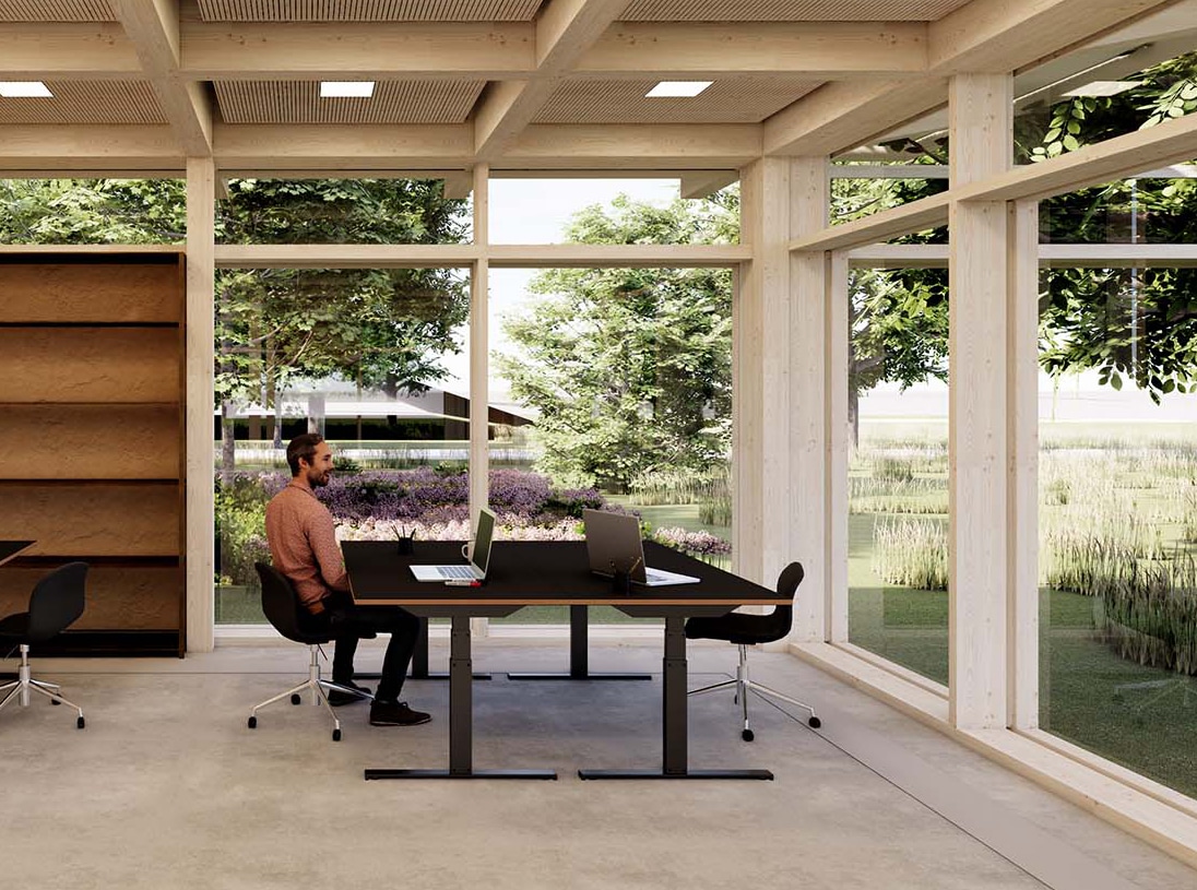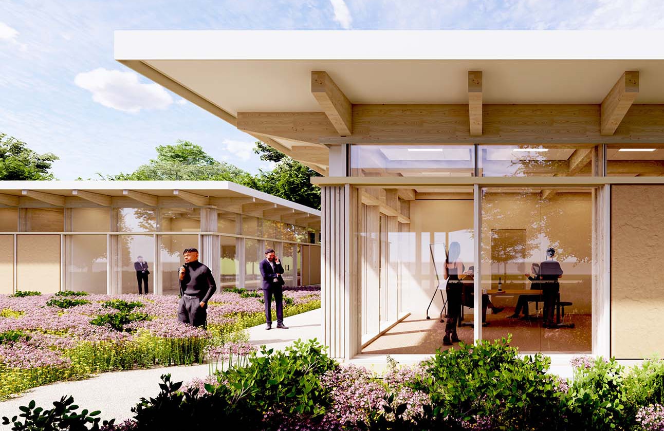 De ambitie is hoog: nieuwe gebouwen die regeneratief, toekomstbestendig en flexibel in gebruik zijn. Met een houten skelet en zorgvuldig gekozen materialen dragen ze actief bij aan CO₂-opslag en circulair bouwen. De participatio’s liggen als dorpjes in de polder en vormen innige clusters van innovatie hubs. Zo ontstaat hier een innovatief landschap met scale-ups, ambachten, living labs, expo’s en experimenten die de mens centraal stellen. Daarmee krijgt de filosofie van het landgoed concrete vorm: vernieuwen door duurzaam te werken, op alle schaalniveaus.