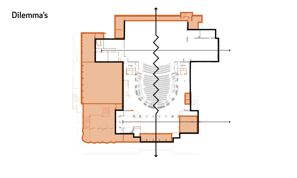 Het gebouw uit 1938 is ontworpen als theater met allure; rijk, royaal en hiërarchisch, en was daardoor al snel uit de sociaal-maatschappelijke mode. Sinds de oorlog heeft het theater geworsteld met haar identiteit, resulterend in diverse transformaties en uitbreidingen. Onze uitdaging schuilt in het behouden van deze krachtige allure en tegelijkertijd het realiseren van een democratisch cultuurgebouw voor de toekomst.