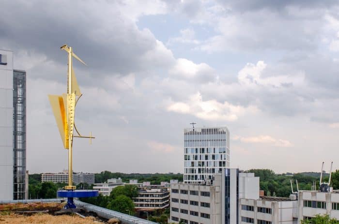 In lijn met de rest van het dak is op de luifel ook een groot groendak aangelegd. Op ‘De dag van de Stad’ werd door wethouder Liesbeth van Tongeren het laatste stuk sedumbedekking uitgerold. “We zijn blij met kleine en grote daken die de stad groener maken. Het zorgt voor schone lucht, draagt bij aan biodiversiteit en biedt de bezoekers van het World Forum bovendien een mooi, groen uitzicht”, aldus wethouder Van Tongeren