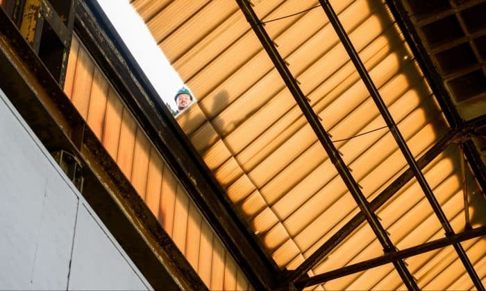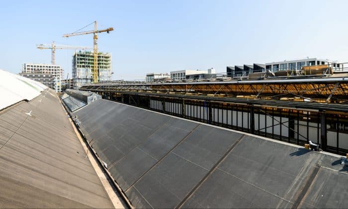 “Op dit moment wordt er gewerkt aan de daken van de hallen. Dat is best een uitdaging omdat het complex zo lang niet in gebruik geweest is. Bij de eerste stap op het dak was gelijk zichtbaar hoe plaatselijk en pragmatisch problemen in de tijd zijn opgelost. Overal vonden we lekkages en ook heel wat duiven hadden een nieuw thuis gevonden in de hallen. Het gebouw is daarom eerst veilig gesteld voordat de werkzaamheden konden aanvangen. Het kapotte glas en de verouderde kunststof platen worden nu vervangen voor isolerend glas. Deze daklichten worden geplaatst volgens de oorspronkelijke tekeningen van Van Gendt.