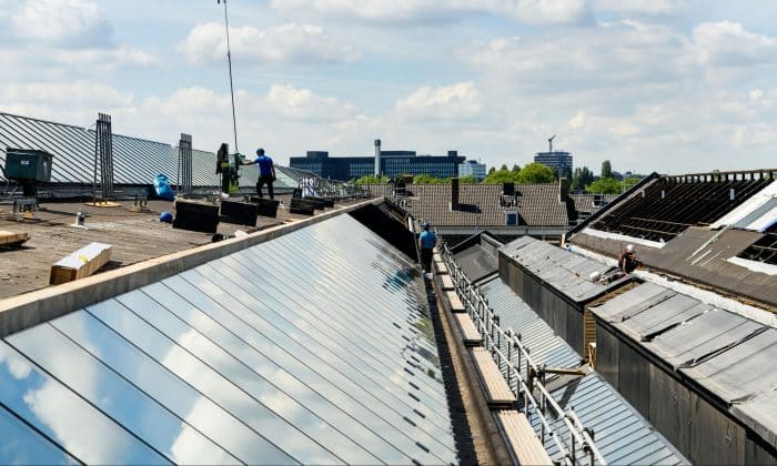 De grote oppervlakte van het daklandschap van de Van Gendthallen biedt een kans voor het inzetten van deze ruimte als generator van energie. Met bijna 6.000m2 ter beschikking kunnen aardig wat zonnepanelen geplaatst worden. De plaatsing van deze panelen is geïnspireerd op de oorspronkelijke dakbekleding van de hallen. Op oude foto’s is een fraai ritme in de dakbekleding te zien. Waarschijnlijk was dit grotendeels met geïmpregneerd papier-linnen en latten afgewerkt. De daklichten met geïntegreerde zonnecellen worden opnieuw op de oorspronkelijke plaats teruggebracht.