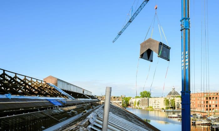 “Naast behoud van het complex zoals het nu is, kijken we ook naar hoe de hallen ooit ontworpen zijn. Van oorsprong hadden de hallen een veel rijker silhouet; de daken waren voorzien van stoomkappen, schoorstenen en verschillende aan- en opbouwen in de vorm van kranen en andere hijsconstructies. Dit silhouet is in de jaren ‘60 veranderd met de verwijdering van deze kappen, maar die brengen we terug”, aldus Christina Kaiser, architect bij Braaksma & Roos Architectenbureau. “Dat betekent dat we de kansen voor verduurzaming goed in beeld moeten brengen. De oude hallen verliezen veel warmte in de schil: via de gevels, vloeren en het dak. Om de authentieke uitdrukking van het gebouw zo veel mogelijk te behouden kiezen we ervoor om de gevels niet te isoleren. Hier wordt alleen nieuw isolerend glas geplaatst. Dat betekent dat we elders moeten zoeken naar reductie van warmteverlies, zoals het dak. Hier zagen we al kansen voor het herstel van het iconische profiel met stoomkappen, maar tegelijkertijd ook een grote kans voor optimalisatie ten behoeve van klimaat.”