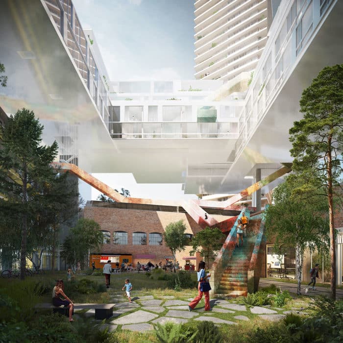 Het terrein in Eindhoven heeft een omvang van 18.000 vierkante meter groot en behelst een oude Luciferfabriek, een Zusterflat en diverse jaren 30 villa’s. Het ontwerpvoorstel verbindt het vergeten gebied opnieuw met de stad en onthult het rijke historische karakter. De oude Luciferfabriek wordt getransformeerd tot een publieke ontmoetingsplek en een stedelijke werkplaats voor de inwoners van Eindhoven. Boven deze toegankelijke publieke zone verrijzen iconische woontorens, als een stad in de lucht.